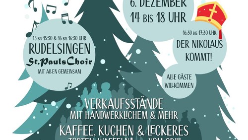 Ein besonderes Highlight: Rudelsingen mit dem St. Pauls Choir und um 16:30 Uhr kommt der Nikolaus vorbei! Alle Gäste sind herzlich willkommen.