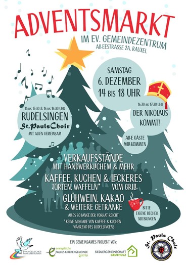 Der Adventsmarkt ist ein gemeinsames Projekt der Ev. Pauluskirchengemeinde, des Ev. Noah Kindergartens, der Siedlergemeinschaft Grutholz und des St. Pauls Choir.